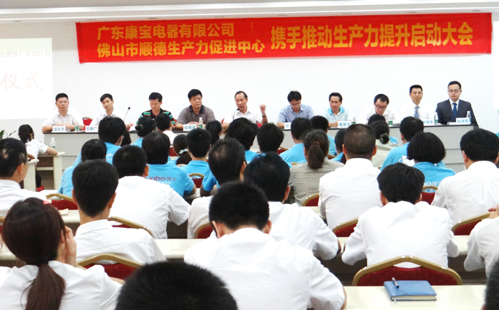 9月16日,康宝电器携手顺德生产力促进中心推动生产力提升大会在我司正式启动。杏坛镇经济和科技促进局副局长徐锦成、康宝公司董事长罗小甲、杏坛总商会常务秘书长黄崇光、顺德生产力促进中心负责人段明、精益生产知名专家孙海华及我司200余名员工参加了此次启动仪式。