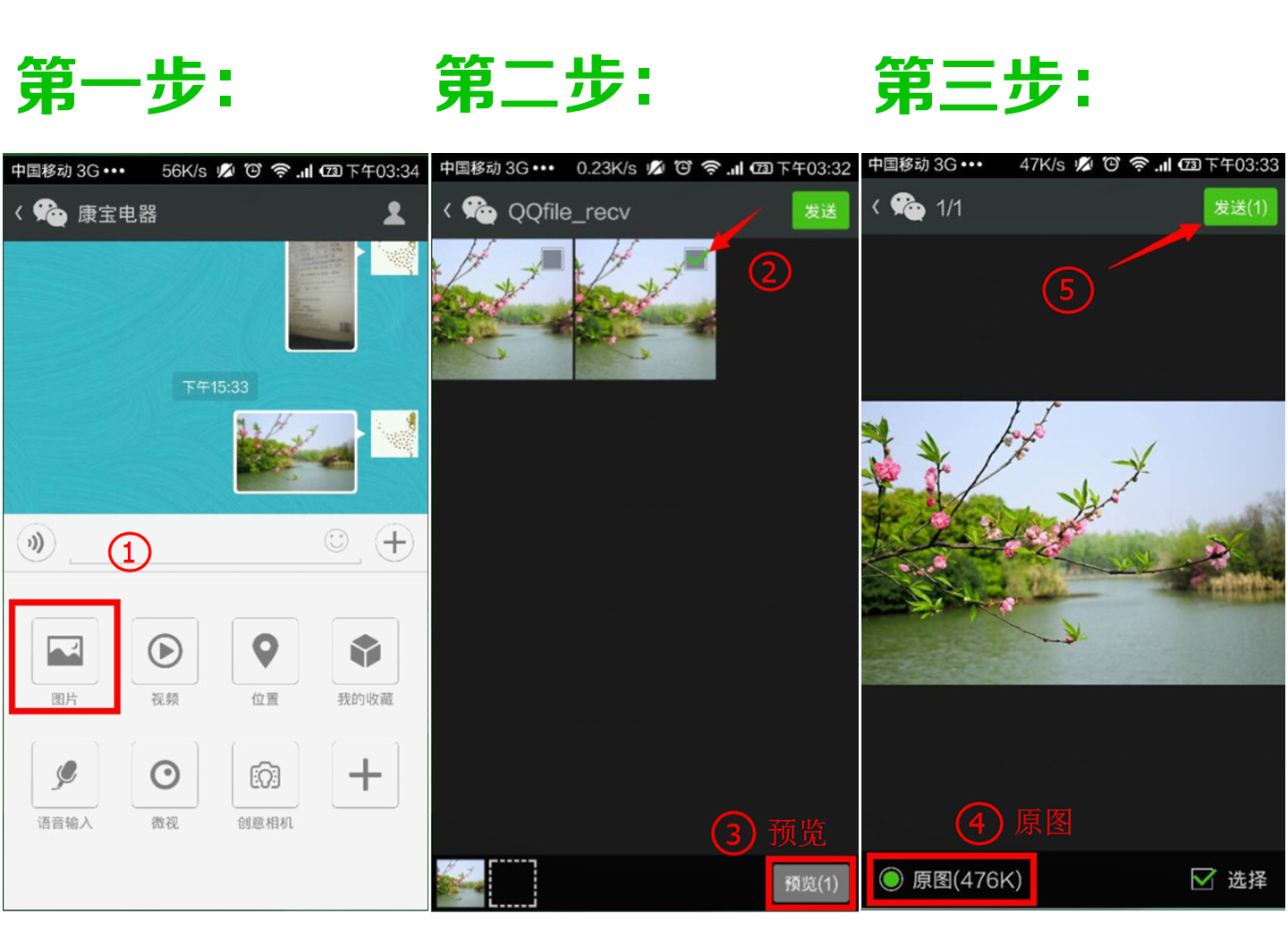 各参赛选手通过拍摄工具记录下身边最精美的1张春景图片通过微信发送给我们便活动参赛资格(注意:请发送图片的原图,微信操作如下。若发现网络图片,取消参赛资格);