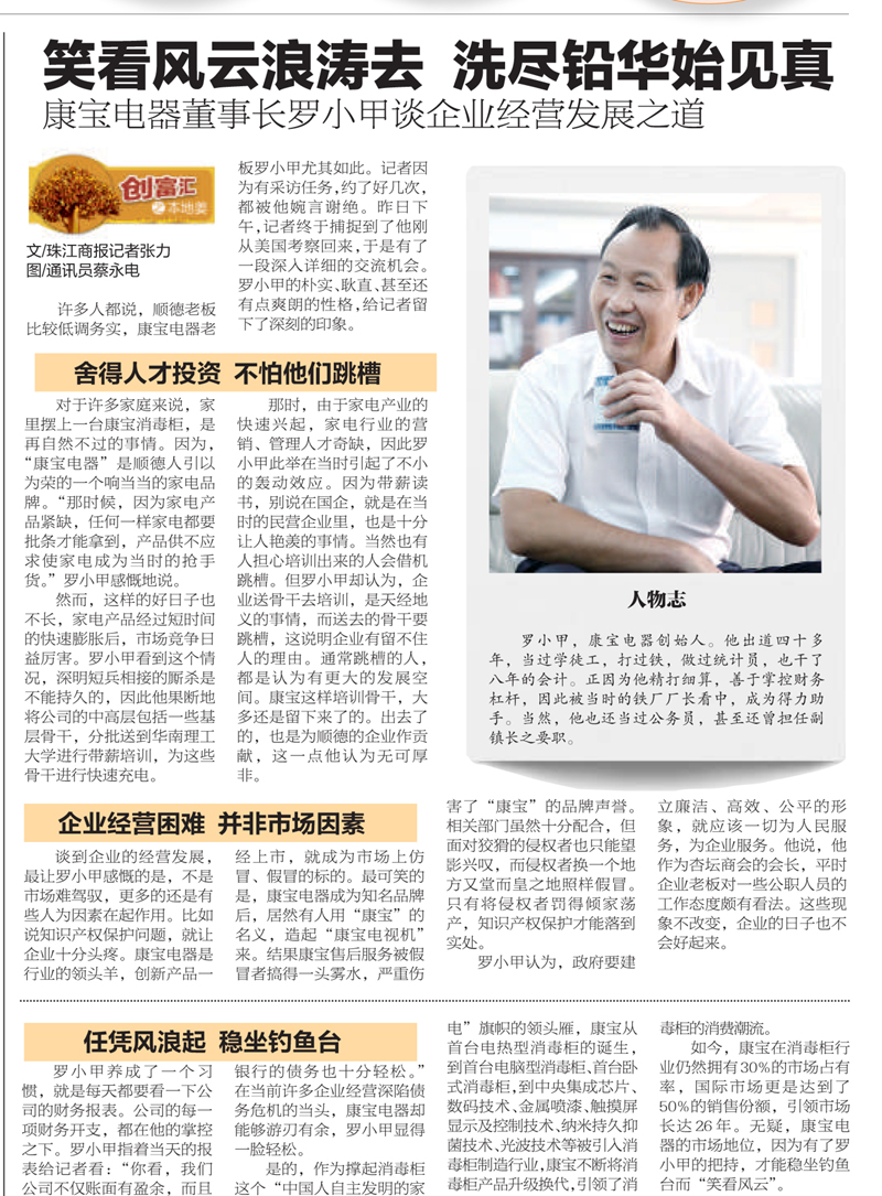 ——康宝电器董事长罗小甲谈企业经营发展之道