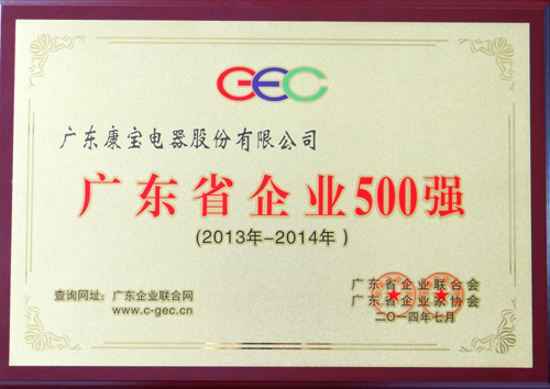 康宝董事长罗小甲表示,荣获“广东省企业500强”和“广东省制造业百强企业”荣誉称号,是政府和社会各届对康宝品牌及企业实力的充分肯定,今后,康宝将一如既往地努力,科学发展,诚信经营,以更好的产品和服务回报社会和广大消费者对康宝的支持与厚爱,不断推动企业实现更好的发展。(蔡永电)