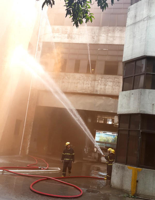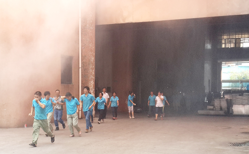 上午10时30分,随着现场指挥员“演习开始”一声令下,一阵急促的警报声响起,“起火了”“逃生啊!”的呼声四起。正在总装车间作业的数百名员工,紧急有序地按照正确逃生方法,弯腰、捂口鼻、迅速从着火大楼撤离,并在楼下集合。在员工们逃生的同时,公司的保安们也紧急开展灭火行动,与此同时,杏坛消防中队的两辆消防车也迅速赶赴现场,参与灭火扑救行动,经过15分钟的战斗,火势被完全扑灭,险情彻底解除,演练取得完满成功。