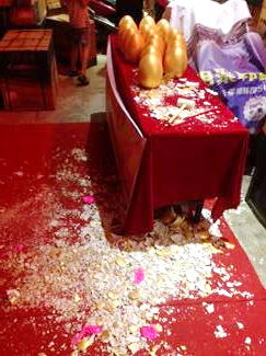 ![]() 当天砸掉的用于抽奖的金蛋散落一地 |