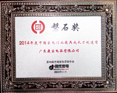 康宝荣获磐石奖之“2014年度中国家电行业最具成长力制造商”