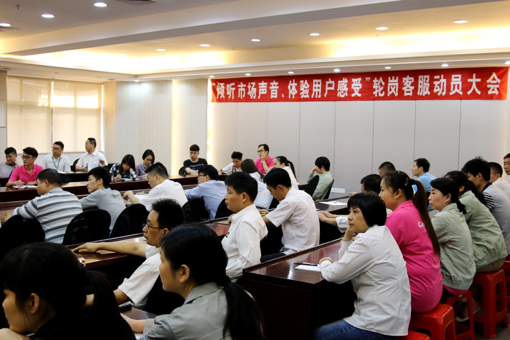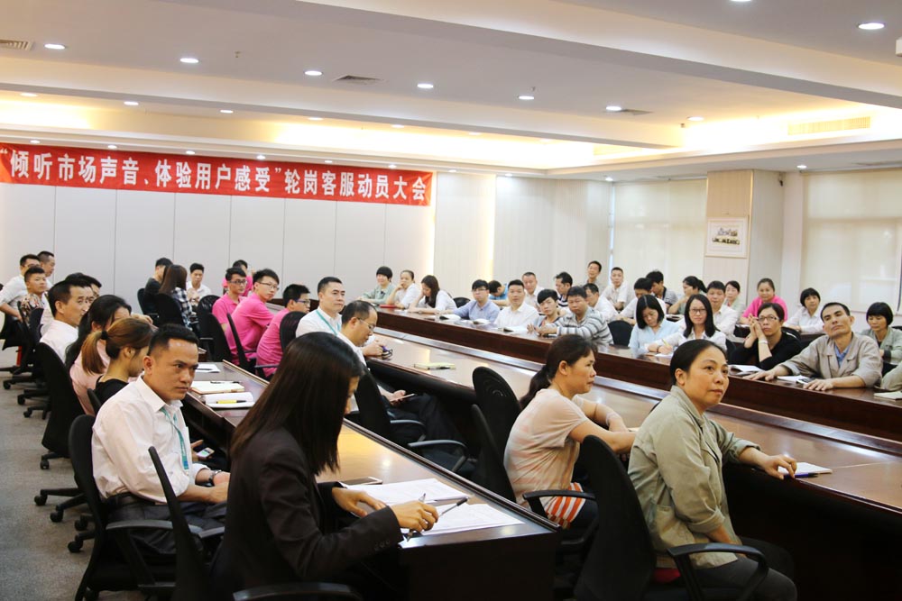 3月31日,康宝“倾听市场声音、体验用户感受”轮岗客服动员大会正式启动,公司营运与人力资源中心联合售后服务部组织我司80多名中高层、车间生产骨干及质量监控人员参与第一批的轮岗客服培训。4月1日—4月22日,公司组织第一批受训人员参与售后轮岗活动。