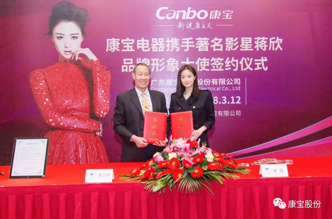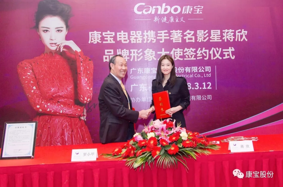 3月12日,广东康宝电器股份有限公司与著名影视演员蒋欣在深圳隆重举行品牌形象大使签约仪式,蒋欣与康宝股份董事长罗小甲分别在签约书上签字,蒋欣正式出任康宝品牌形象大使。